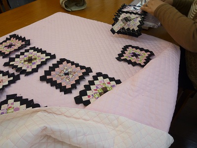 本日は、お教室でした 絵キルトやピースワークの続きをやられたり。。
