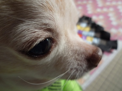 作業をしているamiさんに抱っこしろー 遊んでくれー と うるうる目で訴える