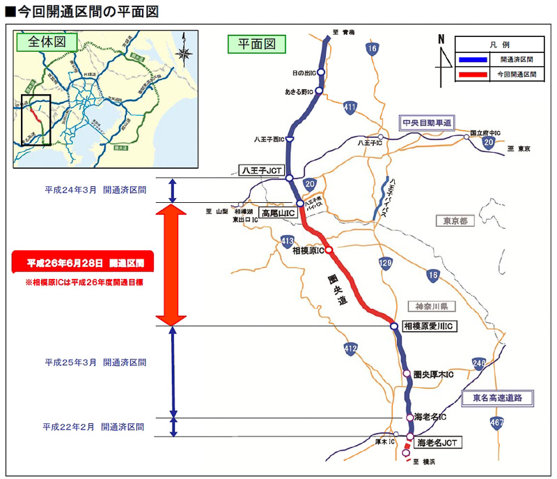 圏央道、相模原愛川IC~高尾山IC間が6月28日に開通